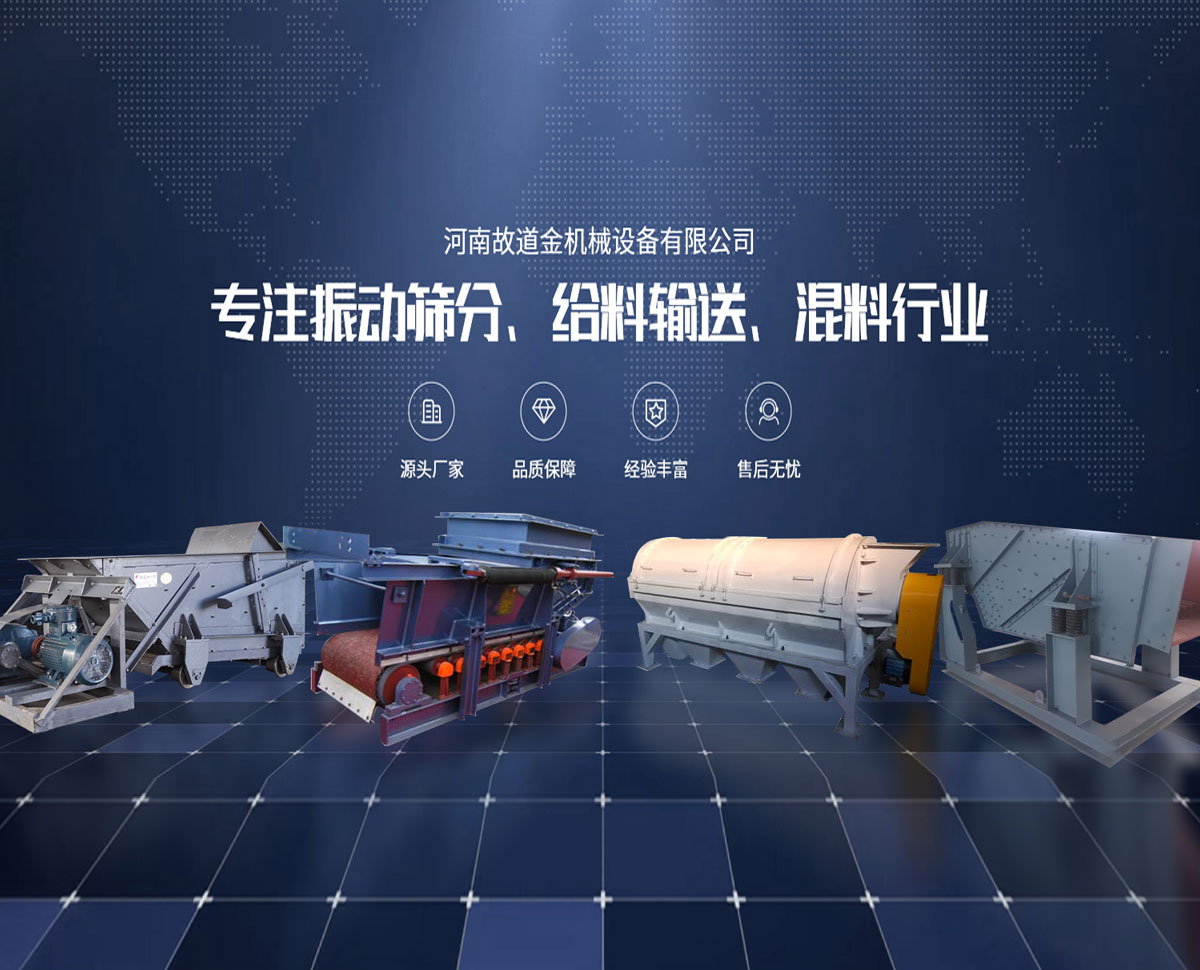 河南故道金機械設備有限公司是一家研發、生產、銷售和服務集成為一體的創新型企業,公司專注于振動篩分、給料輸送、混料行業多年,擁有豐富的一線生產技術。是新鄉市有能力承建從破碎到輸送篩分整條生產的公司之一。  公司主營輕重型直線振動篩、圓振篩、強力篩、概率篩、搖擺篩,等各種系列的篩機以及各種規格型號的配套產品如振動給料機、斗式提升機、垂直振動給料機、帶式給料機、螺旋提升機、構成完整的破碎、輸送、篩分系統生產鏈,并已廣泛應用于煤炭、冶金、礦山、制藥、食品、化工、建材、電力、環保等眾多領域。  故道金機械視質量為生命,奉顧客為上帝,并一貫遵循對每一道工序負責、對每一臺產品負責、對每一位用戶負責的質量方針,竭誠為用戶服務。我們所作的一切將***為您著想,我們深信:質量是打開市場的金鑰匙;我們深信:對您奉獻一顆真誠的心同樣會得到真誠的回報!熱烈歡迎新老用戶、科技專家、行業志士與我公司建立發展各種形式的業務關系,故道金機械竭誠期待與廣有志之士攜手合作,共創大業。